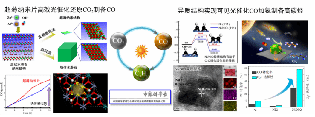 光催化技术被认为是解决能源问题的最有应用前景的技术之一。发展新型高效的光催化材料是该技术实用化的关键。水滑石基纳米结构材料因其电子结构可调、价格低廉等众多优势,而成为光催化领域的研究热点。近几年来,我们研究团队通过在水滑石表面引入缺陷结构增加活性位,增强了对反应物CO2N2的吸附和活化,进而提升催化活性。另外,通过构造界面活性位,调控中间物种的反应路径,从而实现高附加值产品的高选择性合成。