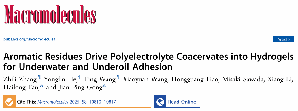 近日,我院新进“百人计划”特聘副教授范海龙在水下黏附材料领域取得重要进展:他们受自然界相分离体系中的固有无序蛋白氨基酸序列启发,研发出一种无需外部刺激即可自发实现相分离与相转变的凝聚层(coacervate)体系,该材料不仅在水下展现出卓越的黏附性能,还能在油环境中稳定工作,相关成果发表于《Macromolecules》。范海龙副教授、北海道大学龚剑萍教授为共同通讯作者,最佳赌博网站排行榜